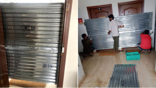 சென்னையில் கொரோனா வைரஸ் பாதிக்கப்பட்டவர்களின் வீடுகளுக்கு வெளியில் கேட் பகுதியில், தகரம் பொருத்தப்படுகிறது. இதை பார்த்ததும் அந்த வீட்டுக்கு செல்லக்கூடிய மக்கள் அதை தவிர்ப்பார்கள். ஆனால் இதுவரை தகர கேட் வைக்கும் பழக்கம் பெங்களூரில் கிடையாது. இப்போது புதிதாக இவ்வாறு ஆரம்பிக்கப்பட்டுள்ளது. ஆனால், அதை எங்கே வைப்பது என்று தெரியாமல் வீட்டு கதவையே அடைத்து விட்டார்கள் என்கிறது மாநகராட்சி வட்டாரம்.