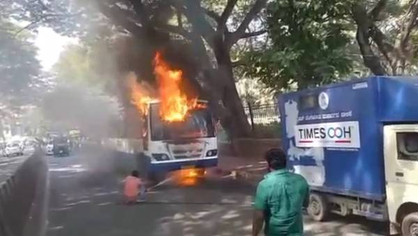பெங்களூர்: கர்நாடகா மாநிலம் பெங்களூருவில் நடுரோட்டில் அரசு பேருந்து ஒன்று தீப்பிடித்து எரிந்த நிலையில் அதிர்ஷ்டவசமாக 40 பயணிகள் உயிர் தப்பிய சம்பவம் பரபரப்பை ஏற்படுத்தியுள்ளது.