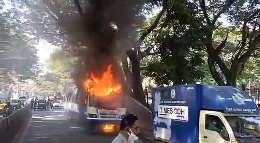 தலைநகர் பெங்களூரில் மெஜஸ்டிக்கிலிருந்து தீபாஞ்சலி நகர் நோக்கி மாநகர பேருந்து ஒன்று சென்று கொண்டிருக்கிறது. அப்போது அந்த பேருந்தில் இருந்து கரும்புகை வந்ததை ஓட்டுநர் கவனித்துவிட்டார். உடனே பதறாமல் கீழே போய் பார்த்தார்.