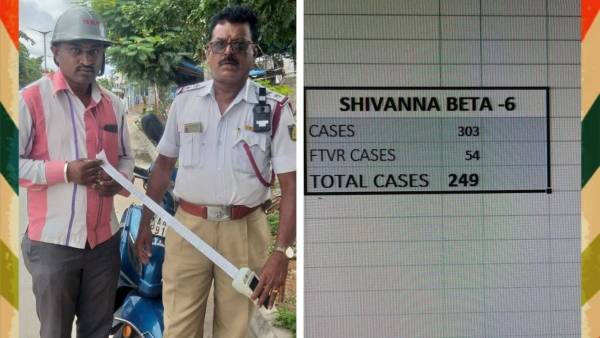 கர்நாடக மாநிலம் பெங்களூரில் உள்ள காமாட்சிபாளையா போக்குவரத்து காவல் நிலையத்தில் சப்-இன்ஸ்பெக்டராக பணியாற்றி வருபவர் எம்.சிவண்ணா. இவர் ஜூன் 21-ஆம் தேதி காலை 11 மணி முதல் மாலை 5 மணி வரை ஞானபாரதி ஜங்ஷனில் பணியில் ஈடுபட்டார்.