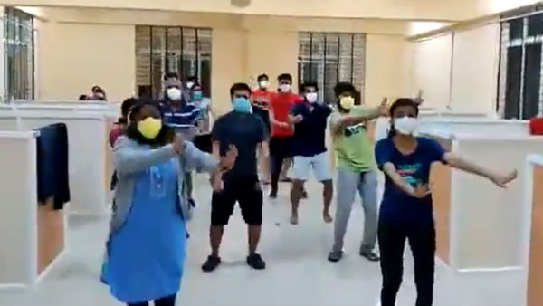 கொரோனாவிற்கு சிகிச்சை பெற்று வரும் பலரும் முகக்கவசம் அணிந்தும், தனிநபர் இடைவெளியை கடைபிடித்தும் கன்னட, இந்தி பாடல்களுக்கு அவர்கள் அழகாக நடனமாடினர். இந்த ஆட்டம் பாட்டம் எல்லாம் வசூல் ராஜா எம்பிபிஎஸ் படத்தின் காட்சிகளை நினைவுபடுத்துவது போல இருந்தது.