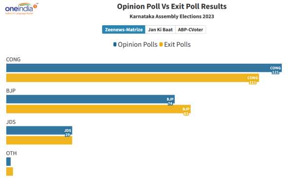 பெங்களூர் : தேர்தலுக்கு முந்தைய கருத்துக்கணிப்பிலும், தேர்தலுக்குப் பிந்தைய கருத்துக்கணிப்பிலும் பெரிய அளவில் வித்தியாசங்கள் காணப்படுகின்றன. தேர்தல் பிரச்சாரத்தின்போது காங்கிரஸ் மற்றும் பாஜக அளித்த வாக்குறுதிகள் வாக்காளர்களிடையே தாக்கத்தை ஏற்படுத்தி இருப்பதை எக்ஸிட் போல் முடிவுகள் காட்டுகின்றன.