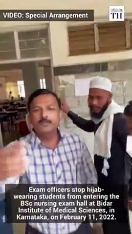 இன்று காலை கர்நாடக மாநிலத்தில் இருக்கும் பிதார் நகரில், BRIMS கல்லூரியில் பி.எஸ்.சி நர்சிங் படிப்புக்கான தேர்வு நடைபெற்றது. மாணவர்களில், ஹிஜாப் அணிந்த முஸ்லிம் பெண்களும் தேர்வு எழுதவந்திருந்தனர். இந்நிலையில், ஹிஜாப் அணிந்து வந்ததால், மாணவிகளை தேர்வு எழுத அனுமதிக்கவில்லை அங்கிருந்த தேர்வு நடத்தும் அதிகாரிகள்.