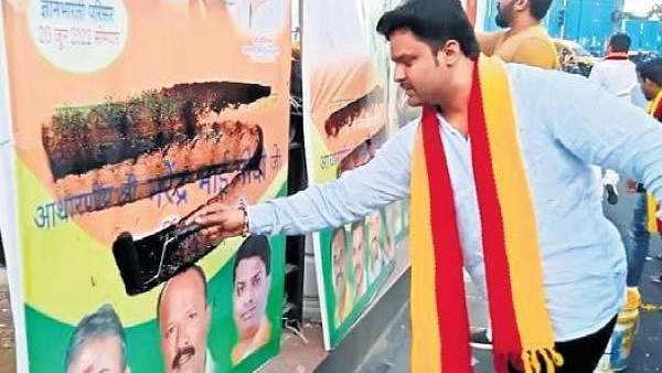 Kannada activists remove Hindi in PM Modi Welcome banners