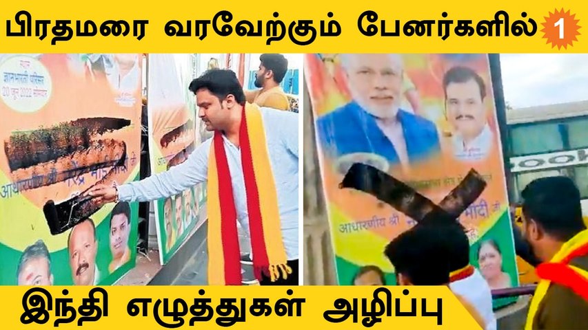 PM Modi-ஐ வரவேற்க வைக்கப்பட்டிருந்த பேனர்களில் Hindi எழுத்துக்கள் அழிப்பு *Politics