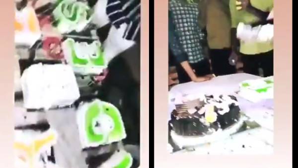இந்த வீடியோ சமூக வலைத்தளங்களில் வைரலானது. இத்தனை கேக்குகள் இத்தனை சிலருக்காக வீணடிக்கப்பட்டதாக பார்த்தவர்கள் குமுறுகிறார்கள். அது மட்டுமல்ல ஐபோனால் வெட்டுவது பணத் திமிரை காட்டுவதாகவும் சமூக வலைத்தளங்களில் பலரும் தெரிவித்தனர். இதுகுறித்து காங்கிரஸ் தலைவர்கள் அளித்த பேட்டியில், தங்கள் பணத்திமிரை மோசமாக காட்டும் கலாச்சாரம் இது. பல மக்கள் கொரோனா காலத்தில் சாப்பிட உணவு இல்லாமல் தவிக்கும் நிலையில், இப்படி பாஜக எம்எல்ஏ மகன் செய்துள்ளது வேதனை அளிக்கிறது என்று தெரிவித்துள்ளனர்.
