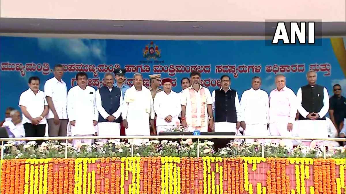 இன்று மதியம் பெங்களூருவில் உள்ள கண்டீரவா மைதானத்தில் நடைபெற்ற பதவியேற்பு விழாவில் சித்தராமையா முதலமைச்சராகவும், டி.கே.சிவகுமார் துணை முதலமைச்சராகவும் பதவியேற்றனர். இவர்களுடன் 8 அமைச்சர்களும் பதவியேற்றனர். எம்.பி.பாட்டீல், பரமேஸ்வரா, பிரியங்க் கார்கே, முனியப்பா, ஜமீர் அகமதுகான், கே.ஜே.ஜார்ஜ், ராமலிங்க ரெட்டி, சதீஷ் ஜார்கிகோலி ஆகியோர் இன்று பதவியேற்றுக்கொண்டனர்.