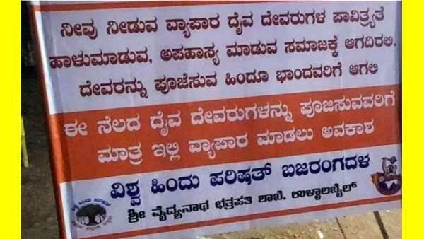இந்நிலையில், திடீரென ஒரு சர்ச்சை ஏற்பட்டுள்ளது.. இந்து கோவில் திருவிழாவில் வியாபாரம் செய்ய இந்துக்களுக்கு மட்டுமே அனுமதி என்று இந்துத்துவா அமைப்பினர் பேனர் வைத்துவிட்டார்கள்.. இதுதான் சர்ச்சையை கிளப்பி வருகிறது.. கர்நாடக மாநிலம் தக்கின கன்னடா மாவட்டம் மங்களூரு நகர் உள்ளாள பைலு பகுதியில் கோவில் திருவிழா நடந்து வருகிறது. அப்போது பஜ்ரங்தள் மற்றும் விஸ்வ ஹிந்து பரிஷத் அமைப்பினர் அங்கு வந்துள்ளனர்.