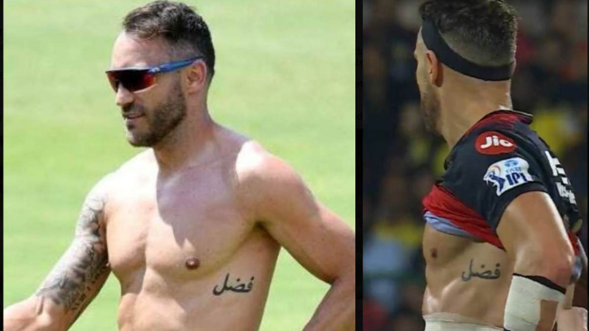 பெங்களூர்: பெங்களூர் அணியின் கேப்டன் டு பிளசிஸ் உடலில் குத்தி இருக்கும் பச்சை சமூக வலைத்தளங்களில் கவனம் பெற்றுள்ளது.