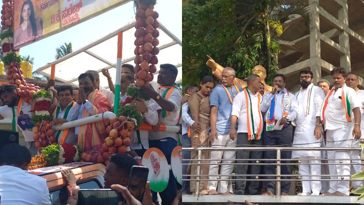 இதில், ரூரல் தொகுதியில் டி.கே.சுரேஷ், தெற்கு தொகுதியில் சௌமியா ரெட்டி, சென்ட்ரல் தொகுதியில் மன்சூர் அலிகான், வடக்கு தொகுதியில் ராஜீவ் கவுடா ஆகியோர் காங்கிரஸ் சார்பில் போட்டியிடுகின்றனர். இவர்களை ஆதரித்து திருமாவளவன் பரப்புரை மேற்கொண்டிருக்கிறார். இந்த பரப்புரையில் காங்கிரஸ் தொண்டர்கள் திருமாவளவனுக்கு பிரமாண்ட வரவேற்பளித்துள்ளனர். பழங்களால் ஆன பிரமாண்ட மாலையை அணிவித்து திருமாவுக்கு காங்கிரஸ் வரவேற்பளித்திருக்கிறது.