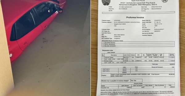 அதை பார்த்த பிறகு நான் அதிர்ச்சி அடைந்தேன். ஏனென்றால் 11 லட்சம் மதிப்புடைய காரை பழுது பார்க்க 22 லட்சம் செலவு ஆகும் என கூறப்பட்டு இருந்தது. இன்சூரன்ஸ் கம்பெனியை தொடர்பு கொண்ட போது, காரை மொத்த இழப்பாக எடுத்துக்கொண்டு நாங்களே சர்வீஸ் செண்டரில் இருந்து எடுத்துக்கொள்கிறோம் என பதில் வந்தது. இதையடுத்து, காருக்கான ஆவணங்களை பெறுவதற்காக ஷோ ரூமிற்கு நான் சென்றேன். அப்போது சர்வீஸ் செண்டர் ஊழியர்கள் 44 ஆயிரத்து 840 என்ற பில் தொகையுடன் ஒரு சீட்டை காண்பித்தனர்.