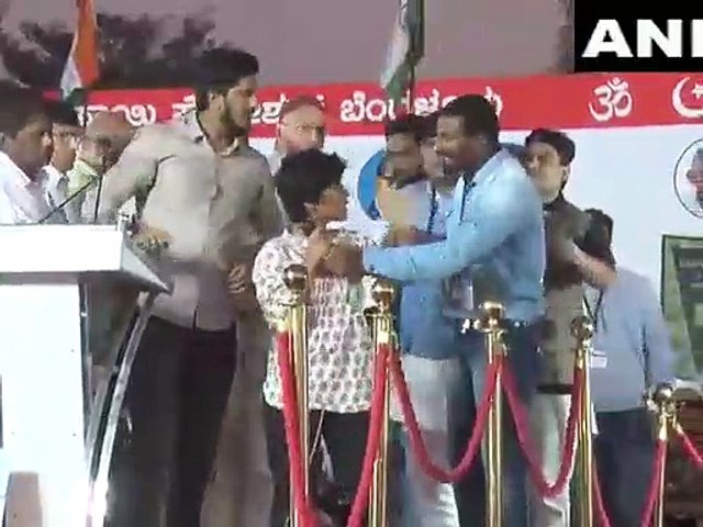 பேரணியில் ஒவ்வொருவராக பேசிக்கொண்டிருந்த போது ஓவைசியும் பேச மேடைக்கு வந்தார். திடீரென மேடை ஏறிய இளம் பெண் ஒருவர், மைக்கை பிடித்து பாகிஸ்தான் வாழ்க, என்று கோஷம் போட்டார். உடனடியாக அதை தடுக்க முயன்ற ஓவைசி அந்த பெண்ணிடம் இருந்து மைக்கை பறிக்க முயற்சித்தார்,