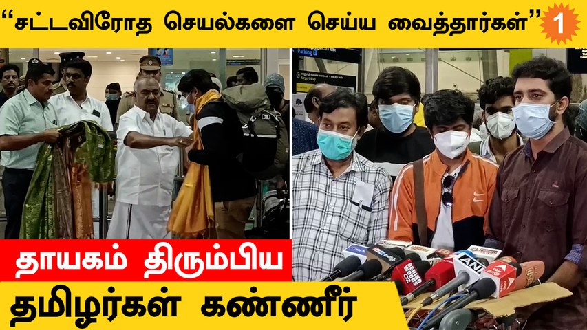 அதன்பின், டெல்லியில் இருந்து விமானம் மூலம் இன்று அதிகாலை 2.20 மணியளவில் சென்னை வந்தடைந்தனர். அவர்களை வெளிநாடு வாழ் தமிழர் நலத்துறை அமைச்சர் செஞ்சி மஸ்தான் வரவேற்றார். தங்களை பல மணிநேரம் வேலை பார்க்க வைத்து தண்டனை கொடுத்து கொடுமை படுத்தியதாக நாடு திரும்பியவர்கள் கண்ணீர் மல்க பேட்டியளித்தனர்.