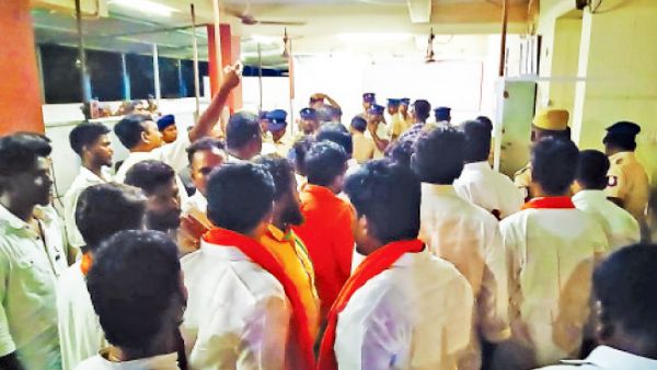 சென்னை: பல்லாவரத்தில் பிரதமர் நரேந்திர மோடி கலந்துகொண்ட சாலை மற்றும் ரயில்வே போக்குவரத்து திட்டங்களின் தொடக்க விழா நிகழ்ச்சிக்காக கடலூர் மாவட்டத்தில் இருந்து பாஜகவால் அழைத்து வரப்பட்டவர்கள் பெண்களிடம் அத்துமீறியதாக கூறி போலீசார் அவர்களை கைது செய்தனர். 3 பேரையும் விடுதலை செய்ய வேண்டும் என்று பல்லாவரம் காவல் நிலையத்தில் பாஜகவினர் முற்றுகையில் ஈடுபட்டனர்.