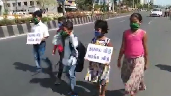 தமிழகத்தில் மதுக்கடைகளை திறக்கக் கூடாது என்ற கோரிக்கை விடுத்து ஆகாஷ், விஷ்டோரியா, ஆதர்ஷ், சபரி, சுப்ரியா ஆகிய 5 சிறுவர்கள் முதல்வர் இல்லம் நோக்கி நடந்து செல்லும் போராட்டத்தில் ஈடுபட்டனர். சென்னை கிழக்குக் கடற்கரைச் சாலையில் கேளம்பாக்கத்தை அடுத்துள்ள படூரில் இருந்து 30 கி.மீ. தூரம் வரை நடந்தே இந்த சிறுவர்கள் நடைப்பயண போராட்டத்தை தொடங்கினர்.