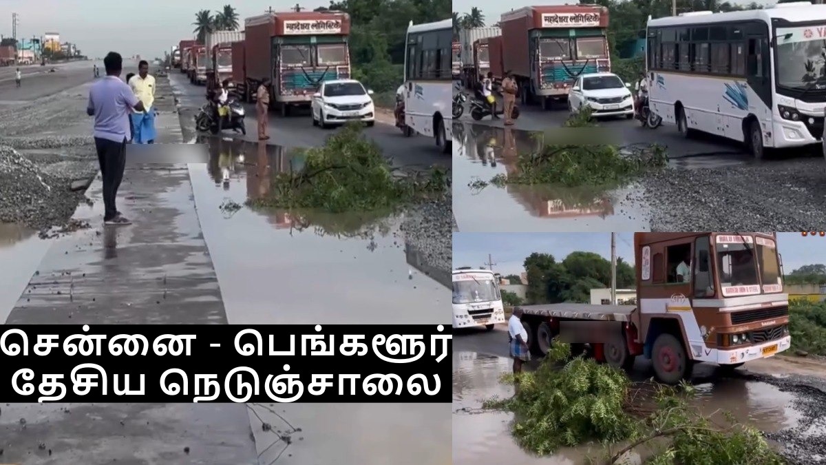 சென்னை: சென்னை - பெங்களூர் தேசிய நெடுஞ்சாலையில் கடுமையான போக்குவரத்து நெரிசல் ஏற்பட்டு உள்ளது. இன்று அதிகாலை அந்த பகுதியில் பயணம் மேற்கொண்டவர்கள் மிகப்பெரிய அதிர்ச்சி அடைந்து உள்ளனர்.