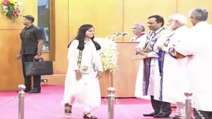 இதே பட்டமளிப்பு விழாவில் பிரதமர் மோடி விழா அரங்குக்கு வந்த போது மரபுகளை மீறி மோடிக்கு வாழ்த்து தெரிவித்து முழக்கங்களும் எழுப்பப்பட்டன.
