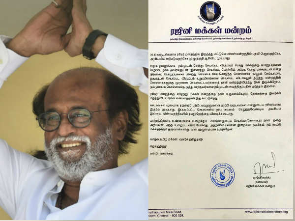 மன்றத்திற்காக உண்மையாக உழைப்பவர்களை நான் நன்கு அறிவேன். அவர்கள் உழைப்புகள் வீண்போகாது. ஒழுங்கு நடவடிக்கை அனைத்துமே எனக்கு தெரிந்துதான் எடுக்கப்பட்டு வருகிறது. எனக்கு தெரியாமல் நடவடிக்கை எடுக்கப்படுவதாக வெளியான தகவல்களுக்காக நான் இந்த விளக்கத்தை அளிக்கிறேன். குடும்பத்தை கவனிக்காமல் யாரும் மன்றத்திற்கு வர வேண்டாம். இவ்வாறு ரஜினிகாந்த் கூறியுள்ளார்.