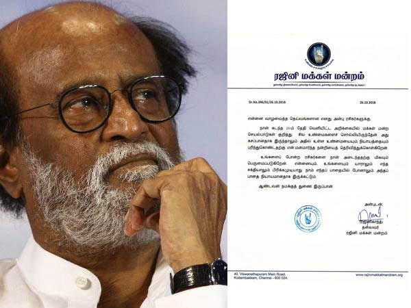 கடந்த 23ஆம் தேதி ரஜினிகாந்த் வெளியிட்ட ஒரு அறிக்கை ரசிகர்கள் வட்டாரத்தில் பெரும் பரபரப்பை ஏற்படுத்தியது.