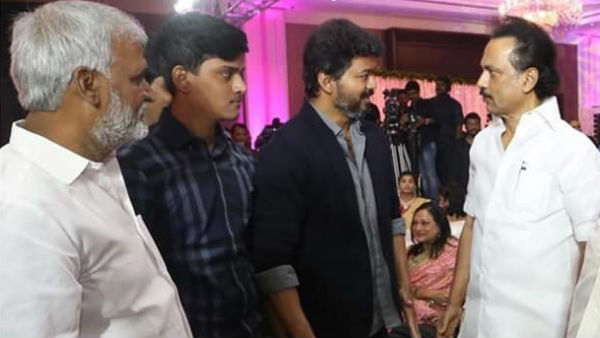 அண்மையில் வெளிவந்த மெர்சல் படத்தில் ஜிஎஸ்டிக்கு எதிராக வசனங்கள் இடம்பெற்றிருந்தன. இதையடுத்து விஜய் மீதான அரசியல் வருகைக்கான எதிர்பார்ப்பு அதிகரித்தது. இந்த நிலையில் தனியார் நட்சத்திர ஹோட்டல் ஒன்றில் நடிகர் விஜய், திமுக தலைவர் ஸ்டாலினுடன் சிரித்து பேசுவது போலவும் துரைமுருகனுடன் கைகுலுக்குவது போலவும் புகைப்படங்கள் வைரலாகின.