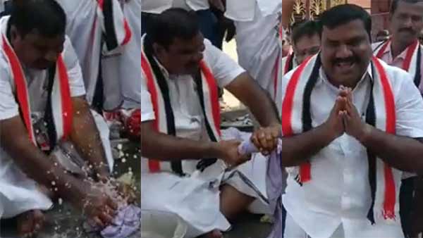 "கொஞ்சம் தள்ளும்மா".. என்று சொல்லிவிட்டு, அந்த துணியை வாங்கி கொண்டு தரையில் உட்கார்ந்தார்.. பக்கத்தில் இருந்த துணி சோப்பை எடுத்து அந்த துணிக்கு சரசரவென சோப்பு போட்டார்.. வேக வேகமாக அடித்து துவைத்தார்.. கடகடவென அலசி பிழிந்தார்... துணி துவைத்து கொண்டே, அந்த பெண்ணிடம், "ஏம்மா.. மறக்காமல் இரட்டை இலை சின்னத்தில் வாக்கு போட்டுடும்மா" என்றார். வேட்பாளர் துணி துவைத்து தருவதை பார்த்து, நாகூர் பகுதி மக்கள் மூக்கின் மேல் விரலை வைத்துவிட்டனர். இவர் துணி துவைக்கும் வீடியோவும் இணையத்தில் வைரலாகி வருகிறது.