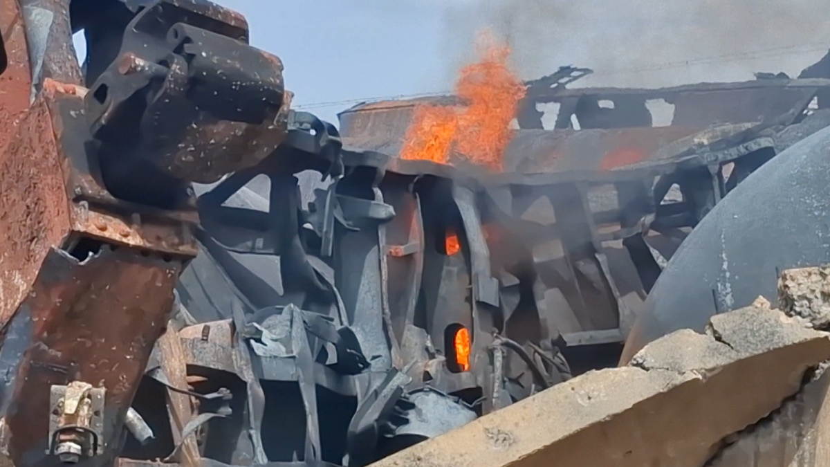 இந்த ரயிலில் இருந்த 18 டீசல் டேங்கர்கள் மளமளவென தீப்பிடித்து எரிந்து 12 லட்சத்து 60 ஆயிரம் லிட்டர் டீசல் எரிந்து முழுமையாக நாசமானது. இந்நிலையில் மேலும் ஒரு டேங்கரில் தீ பிடித்துள்ளது.