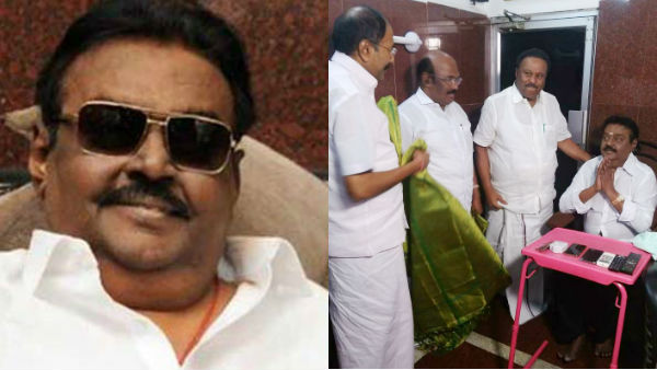 உடனே அமைச்சர்களும், விஜயகாந்துக்கு பொன்னாடையை போர்த்தி, உடல்நிலை எப்படி இருக்கிறது என்று விசாரித்து பேசினர். பிறகு இந்த முறையும் நாம் வெற்றி பெறணும்.. 2 தொகுதி தேர்தல்களிலும் ஆதரவு தர வேண்டும் என்றும் கேட்டுக் கொண்டனர். அதற்கு விஜயகாந்த், "சொல்லியாச்சு.. உங்களுக்கு தான் ஓட்டு.. நீங்கதான் ஜெயிப்பீங்க" என்று நம்பிக்கை தெரிவித்துள்ளார். இதைக்கேட்டு அதிமுக அமைச்சர்களுக்கு புல்லரித்து விட்டதாம்.