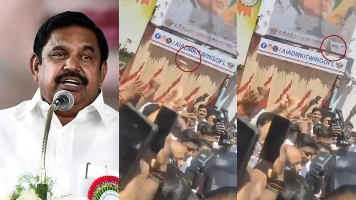 முன்னதாக ஐடி விங் சார்பாக எல்இடி டிஜிட்டல் பதாகையை எடப்பாடி பழனிச்சாமி திறந்து வைத்தார். அப்போது திடீரென எங்கிருந்தோ பறந்து வந்த செல்போன் ஒன்று அவரது கன்னத்தில் பலமாக தாக்கியது. இதனால் எடப்பாடி பழனிச்சாமி சற்று அதிர்ச்சி அடைந்தாலும் செல்போனை தட்டி விட்டு சிரித்த முகமாக காணப்பட்டார். அதே நேரத்தில் அவருக்கு அருகில் இருந்த நத்தம் விஸ்வநாதன், திண்டுக்கல் சீனிவாசன் ஆகியோர் அதிர்ச்சி அடைந்தனர். தொடர்ந்து யாருயா அது என நிர்வாகிகள் ஆவேசமாகக் கேட்ட நிலையில், எடப்பாடி பழனிசாமி வேண்டாம் விடுங்க என கூறியவாரே சென்றார்.