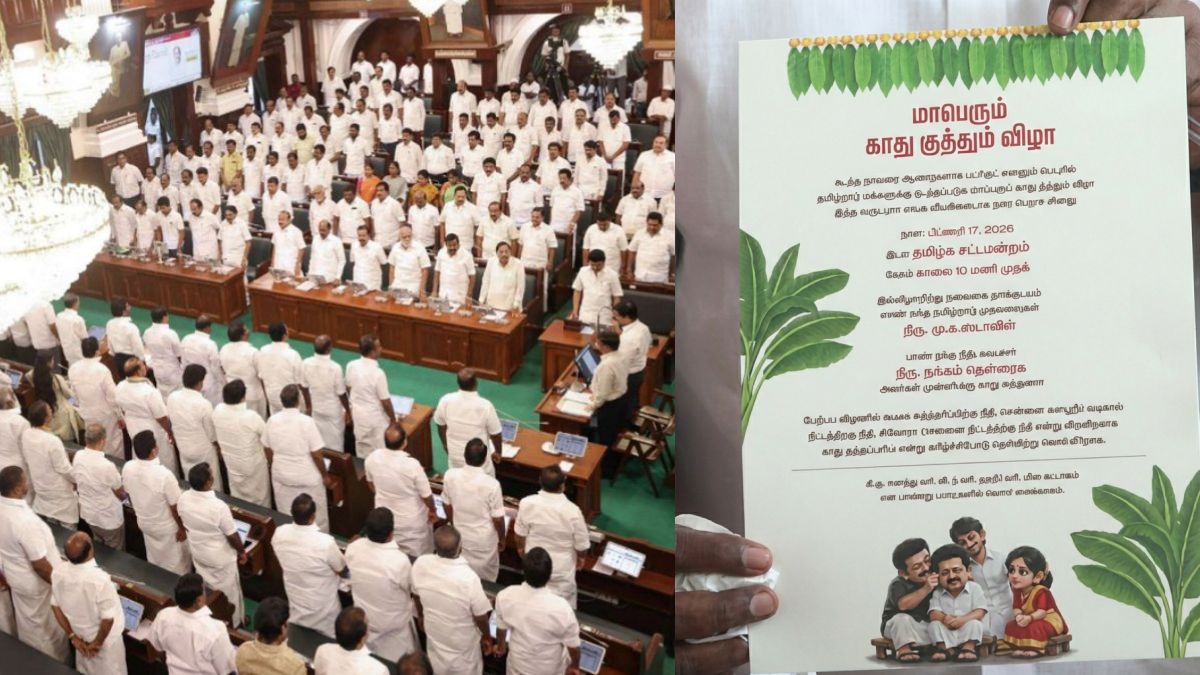 அந்த அழைப்பிதழில், "கடந்த 4.5 ஆண்டுகளைப் போல் இந்த ஆண்டும் வெகுவிமரிசையாக காது குத்தும் விழா" என குறிப்பிட்டிருந்தனர். 2021 ஆம் ஆண்டு மே 7 ஆம் தேதி திமுக அரசு பதவியேற்றது. இந்த நிலையில் இந்த ஆட்சியில் கடைசி கூட்டத் தொடர் இன்று நடைபெற்று வருகிறது. இந்த கூட்டத் தொடரில் புதிய அறிவிப்புகள் வெளியாகும் என தெரிகிறது.