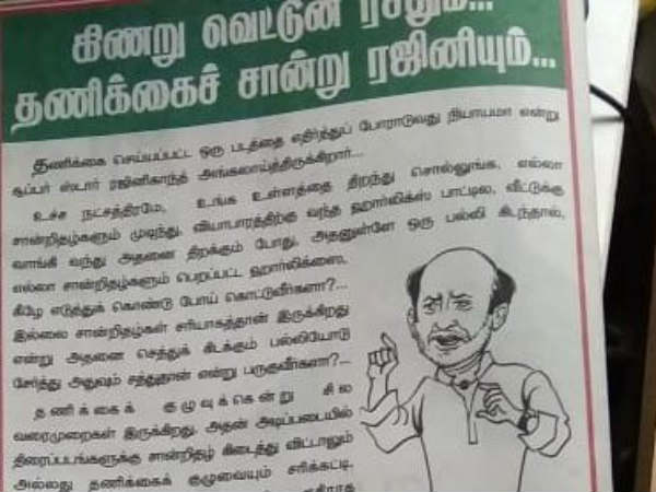 இதுகுறித்து நமது நாளிதழில் குத்தீட்டி என்ற பகுதியில் கடுமையான விமர்சனம் முன் வைக்கப்பட்டுள்ளது. கிணறு வெட்டின ரசீதும், தணிக்கை சான்று ரஜினியும்.. என்ற தலைப்பில் இந்த விமர்சன கட்டுரை இடம்பெற்றுள்ளது. தணிக்கை செய்யப்பட்ட ஒரு படத்தை எதிர்த்து போராடுவது நியாயமா என்று சூப்பர் ஸ்டார் ரஜினிகாந்த் அங்கலாய்க்கிறார்.