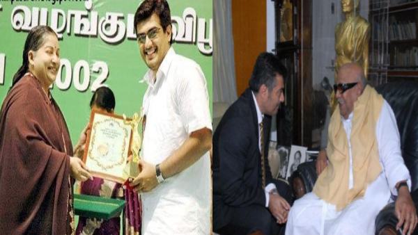 நடிகர் அஜீத்குமாரை பொறுத்தவரை அரசியலில் இருந்து முழுமையாக ஒதுங்கி தான் உண்டு தன் நடிப்புண்டு என்று இருப்பவர். கடந்த திமுக ஆட்சியில் நடைபெற்ற பாசத்தலைவனுக்கு பாராட்டு விழாவில் பேசிய அஜீத்குமார், சினிமா இண்டஸ்ரிக்குள் அரசியல் வேண்டாம் என்றும் தங்களை சிலர் மிரட்டி வர வைப்பதாகவும் கருணாநிதியிடம் நேரடியாகவே விழா மேடையில் வைத்து கம்ப்ளைன்ட் செய்தார். இது அப்போது பெரும் பரபரப்பை ஏற்படுத்தியது.