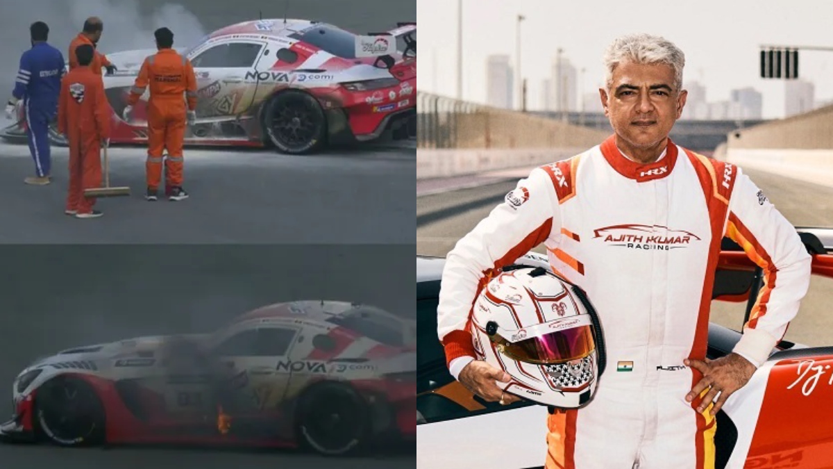 துபாயில் உலகத்தரம் வாய்ந்த 'துபாய் 24 ஹவர்ஸ்' (Dubai 24 Hours) கார் பந்தயம் விறுவிறுப்பாக நடைபெற்று வருகிறது. இந்தப் போட்டியில் நடிகர் அஜித்குமார் நடத்தி வரும் 'அஜித்குமார் ரேசிங்' (Ajith Kumar Racing) அணி பங்கேற்றுள்ளது. இந்நிலையில், கார் பந்தயத்தின் போது எதிர்பாராத விதமாக அஜித்தின் அணி கார் தீப்பிடித்து எரிந்தது பெரும் பரபரப்பை ஏற்படுத்தியது.