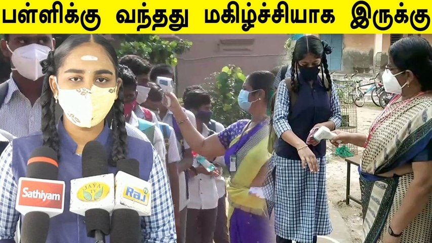 தமிழகத்தில் ஒன்றரை ஆண்டுகளுக்கு பின்னர் பள்ளிகள் திறந்த நிலையில் மாணவர்கள் மகிழ்ச்சியாக பள்ளிக்கு சென்றனர். அவர்களை பூங்கொத்து கொடுத்தும் இனிப்பு கொடுத்தும் ஆசிரியர்கள் வரவேற்றனர். மாணவர்களுக்கு உடல் வெப்ப பரிசோதனை செய்யப்பட்டது. பின்னர் கிருமிநாசினி கொடுக்கப்பட்டது.