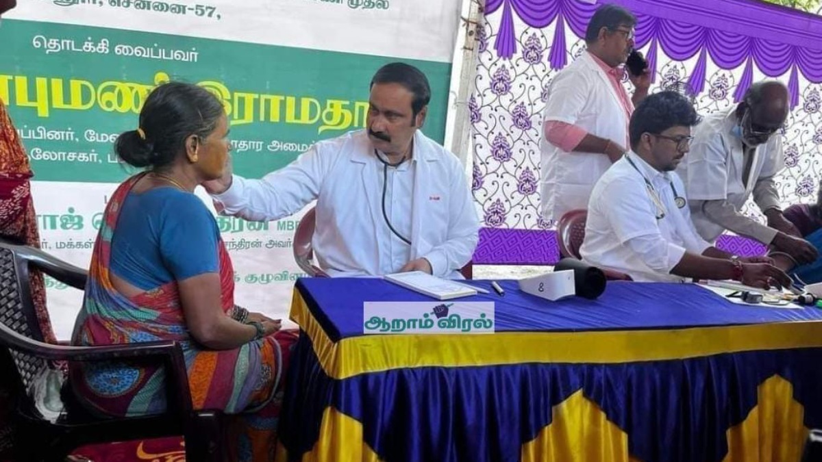 அன்புமணியை பாருங்களேன்.. டாக்டர் கோர்டில் ஸ்டெதஸ்கோப் அணிந்து எண்ணூர் மக்களுக்கு உடல்நல பரிசோதனை