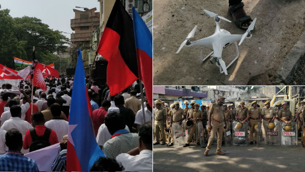 கூடுதல் கமிஷனர்கள், இணை கமிஷனர்கள், துணை கமிஷனர்கள் என அவர்களது தீவிரம் இந்த பேரணியில் அதிகமாகவே தென்பட்டது. ஆங்காங்கே ட்ரோன்கள் மூலம் பேரணி வீடியோ பதிவாகி கொண்டிருந்தது.. ராஜரத்தினம் ஸ்டேடிய மேடையில் ஏறி தலைவர்கள் குடியுரிமை சட்டத்தை எதிர்த்தும், மத்திய அரசுக்கு எதிராக கோஷம் மட்டுமே எழுப்பி தங்கள் எதிர்ப்பை மிக அமைதியான முறையில் பதிவு செய்தனர்.