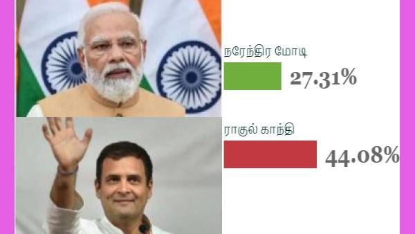 அதன்படி, மோடிக்கு 27.31% வாக்குகளும், ராகுல்காந்திக்கு 44.08 சதவிதமும் வாக்குகள் விழுந்துள்ளன.. கெஜ்ரிவாலுக்கு 16.58 சதவீதமும், மம்தாவுக்கு 7.88 சதவீதமும், சந்திரசேகர ராவுக்கு 1.85 சதவீதமும், உத்தவ் தாக்கரேக்கு 0.59 சதவீதமும், நிதிஷ் குமாருக்கு 0.93 சதவீதமும், அகிலேஷூக்கு 0,.77 சதவீதமும், வாக்குகள் கிடைத்துள்ளன.. அதாவது, மோடியை பின்னுக்கு தள்ளிவிட்டு, ராகுல் முந்திக்கொண்டு முதலாவது இடத்தில் வந்து நின்றுள்ளார்.. இது ஒரு சாதாரண கணிப்புதான் என்றாலும், 18 சதவீத வாக்குகள் வித்தியாசம் உள்ளதை நிச்சயம் கவனிக்க வேண்டிய விஷயமாகும். !!!