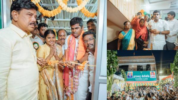 சென்னை அருகே மாதவரத்தில் சில நாட்களுக்கு முன்னர் தாமரை கிளினிக் திறப்பு விழா நிகழ்ச்சி நடைபெற்றது. இந்த நிகழ்ச்சியில் பங்கேற்க வருகை தந்த தமிழக பாஜக தலைவர் அண்ணாமலைக்கு மெர்சலான வரவேற்பு அளிக்கப்பட்டது. தமிழகத்தின் வருங்காலமே! வருங்கால முதல்வரே! தமிழகத்தின் நாளைய சரித்திரமே! என்றெல்லாம் அமர்க்களப்படுத்தி இருந்தனர்.