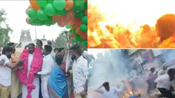 இந்த வீடியோ தற்போது வைரலாக சுற்றி வருகிறது. 144 தடை உத்தரவு அமலில் இருக்கும்போது பெருமளவுக்கு தொண்டர்கள் கூடியது, தீப்பற்றக்கூடிய பொருட்களை அஜாக்கிரதையாக கையாண்டது உள்ளிட்ட பிரிவுகளின்கீழ், முத்துராமன் உள்ளிட்டோர் மீது காவல்துறை சார்பில் வழக்கு பதிவு செய்யப்பட்டுள்ளது.