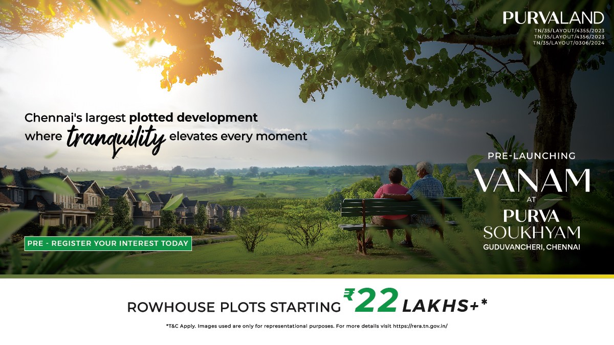 சென்னைக்கு அருகே.. அனைத்து வசதிகளுடன் பிளாட்கள்! ரூ.22 லட்சத்தில் பூர்வ சௌக்கியம் வழங்குகிறது