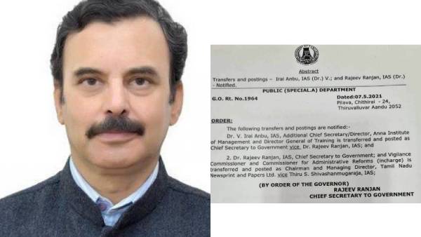 சென்னை: தமிழகத்தின் புதிய முதல்வராக ஸ்டாலின் இன்று பதவியேற்ற நிலையில் தமிழக அரசின் புதிய தலைமைச் செயலாளராக வெ.இறையன்பு நியமனம் செய்யப்பட்டுள்ளார். தலைமை செயலாளராக இருந்த ராஜிவ் ரஞ்சன், தமிழ்நாடு செய்தித்தாள் கழகத்துக்கு மாற்றப்பட்டுள்ளார். இதற்கான உத்தரவில் கையெழுத்திட்டதும் ராஜிவ் ரஞ்சன் தான்.