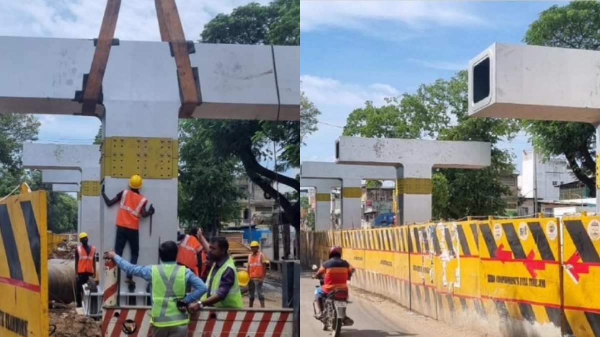 சேலம் இரும்பு ஆலை இந்த தூண் போன்ற வடிவமைப்பை உருவாக்கி உள்ளது. இந்த இணைப்பு முடிந்த உடன் பாலத்தின் மேல் பகுதி அமைக்கும் பணி நடைபெறும். பாலத்தின் மேல் பகுதி வழக்கம் போல் சிமென்ட் கான்கிரீட் கொண்டு அமைக்கப்படும். சென்னையில் இரும்பு தூணால் அமைக்கப்படும் முதல் மேம்பாலம் இதுதான் என்கிறார்கள் அதிகாரிகள்.