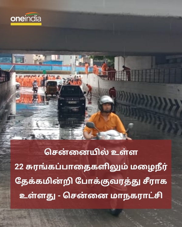 சென்னையில் உள்ள 22 சுரங்கப்பாதைகளிலும் மழைநீர் தேக்கமின்றி போக்குவரத்து சீராக உள்ளது - சென்னை மாநகராட்சி