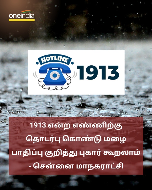 1913 என்ற எண்ணிற்கு தொடர்பு கொண்டு மழை பாதிப்பு குறித்து புகார் கூறலாம் - சென்னை மாநகராட்சி