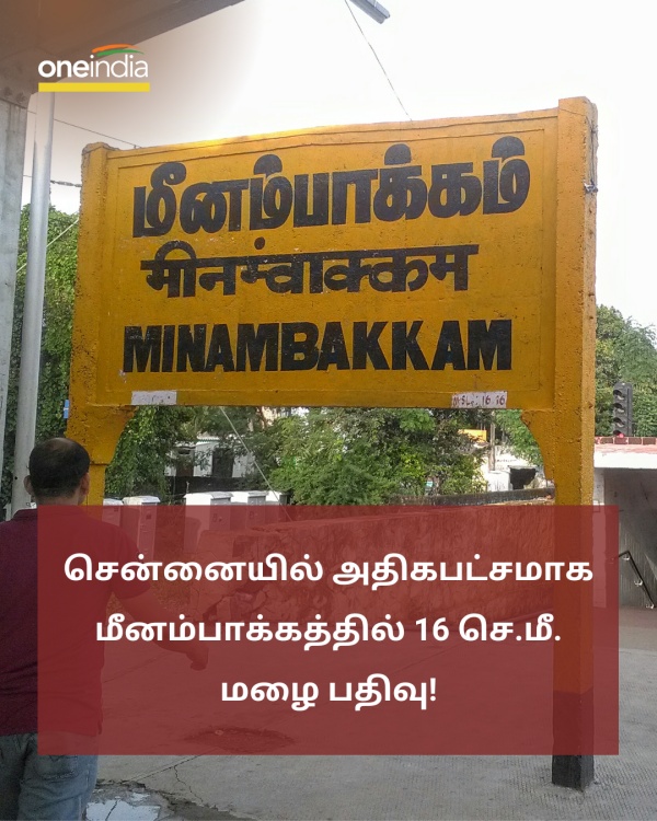 சென்னை மீனம்பாக்கத்தில் 16 செமீ மழை பதிவு - வானிலை ஆய்வு மையம்