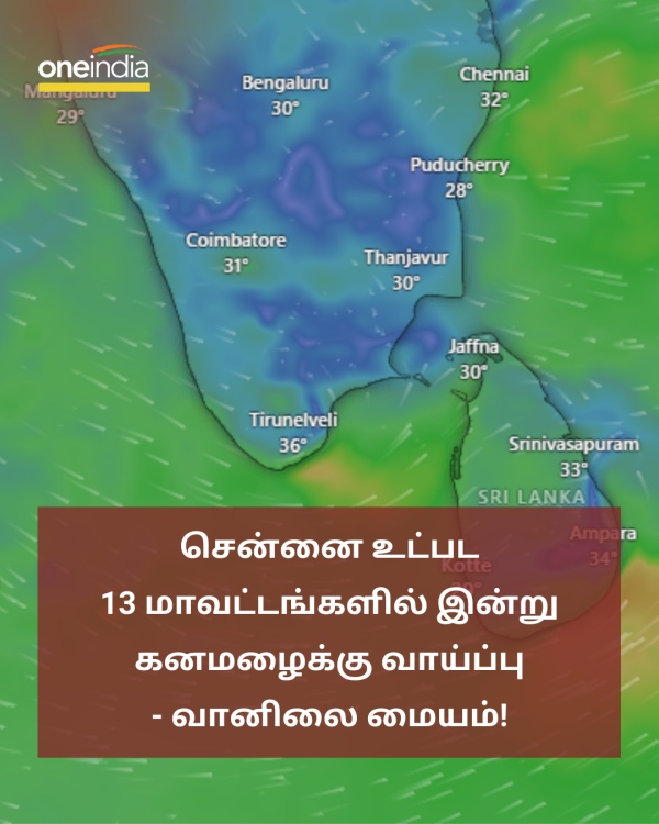 சென்னை உட்பட 13 மாவட்டங்களில் இன்று கனமழைக்கு வாய்ப்பு - வானிலை மையம்!