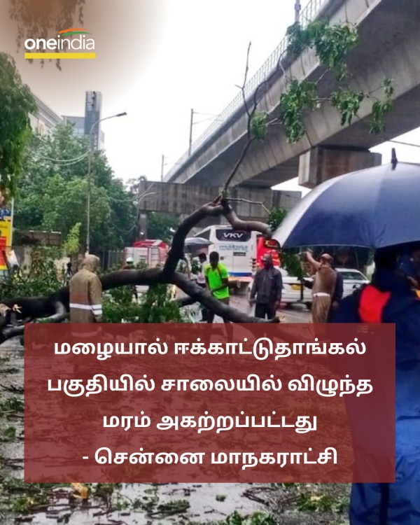 மழையால் ஈக்காட்டுதாங்கல் பகுதியில் சாலையில் விழுந்த மரம் அகற்றப்பட்டது - சென்னை மாநகராட்சி