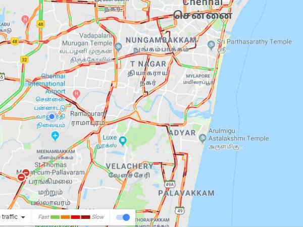 சென்னை : சென்னையில் பருவமழை தொடக்கமே படுஜோராக தொடர்ந்து மழை பெய்து வருகிறது. மழை பெய்யத் தொடங்கியதுமே சென்னை நகரின் சாலைகளில் டிராபிக் ஜாமும் ஜாம் ஜாம் என்று இருக்கிறது. கூகுள் மேப்பில் பார்த்தால் சென்னையின் பிரதான சாலைகள் அனைத்துமே ரெட் கோடு தான் காட்டுகிறது. அதாவது பிரதான சாலைகள் அனைத்திலுமே வாகனங்கள் வரிசை கட்டி காத்திருக்கின்றன.