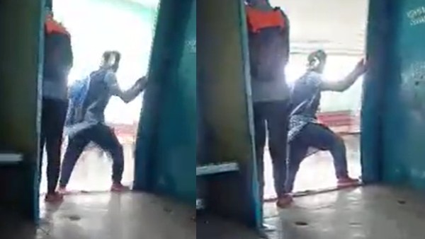 இதனை அந்த ரயில் பெட்டியில் பயணித்த பயணி ஒருவர் தனது செல்போனில் வீடியோ காட்சி பதிவு செய்தனர். தற்போது அந்த காட்சி சமூக வலைதளத்தில் பரவி, பெற்றோர்கள் மட்டுமின்றி அனைத்து தரப்பினரையும் அதிர்ச்சியடைய செய்துள்ளது.