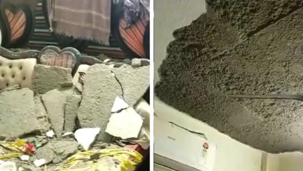 அப்போது படுக்கை அறையின் சிமெண்ட் மேற்கூரை திடீரென முழுவதுமாக பெயர்ந்து விழுந்தது . அங்கிருந்த கட்டிலில் மேற்கூரைகள் விழுந்தது. நல்லவேளை அந்த அறையில் அப்போது யாரும் இல்லாததால் அதிர்ஷ்டவசமாக உயிர் தப்பினர்.