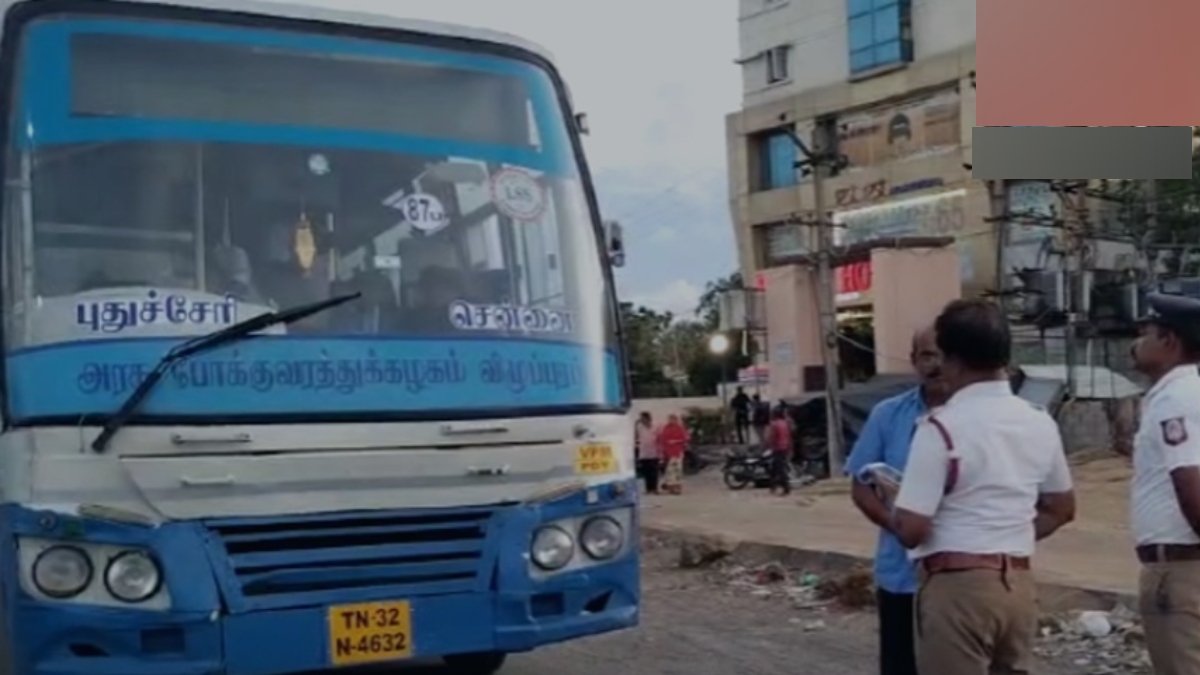 சென்னையில் இருந்து புதுச்சேரிக்கு பேருந்துகள் இயக்கப்பட்டு வருகின்றன. அந்த வகையில் இன்று சென்னையில் இருந்து புதுவைக்கு சென்று கொண்டிருந்த அரசு பேருந்து தாம்பரத்தில் பயணிகளை ஏற்றுவதற்காக நிறுத்தப்பட்டு இருந்தது. அப்போது நோ பார்க்கிங்கில் பேருந்து நின்ற நிலையில், அதற்கு அங்கு பணியில் இருந்த டிராபிக் போலீசார் அரசு பேருந்து டிரைவருக்கு அபராதம் விதித்தனர்.